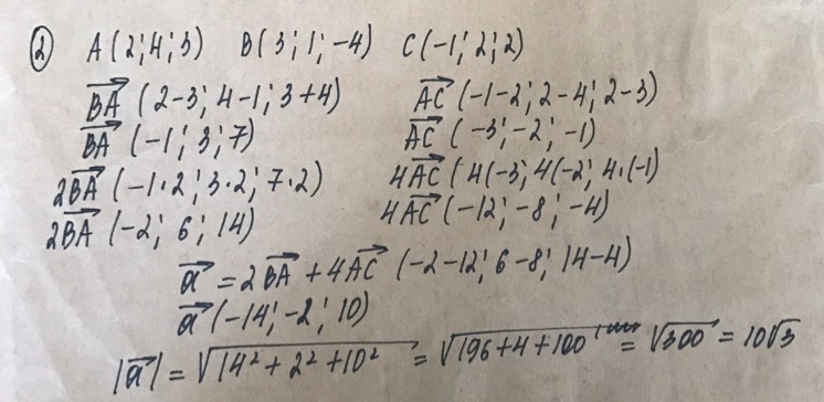 Чтобы найти координаты вектора нужно из координат конечной точки отнять координаты начальной. А длина находится по формуле |а| = корень из (х^2+y^2+z^2)