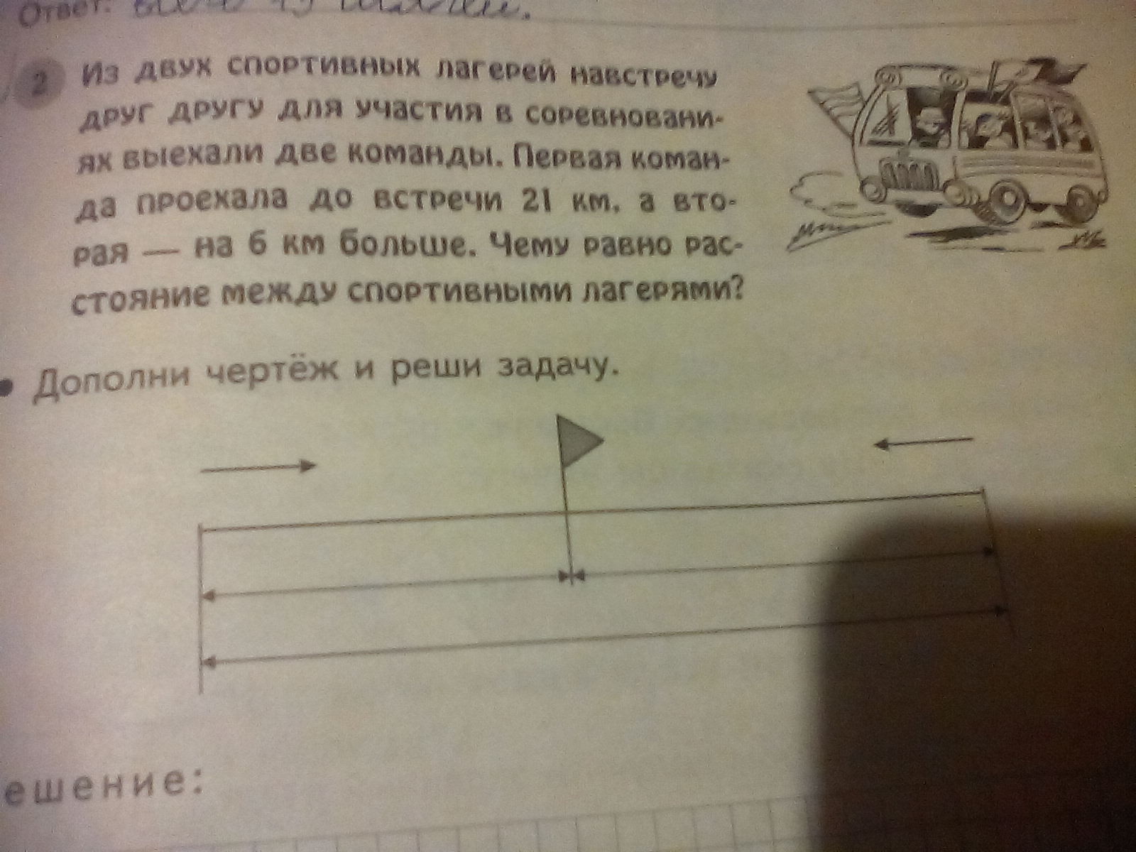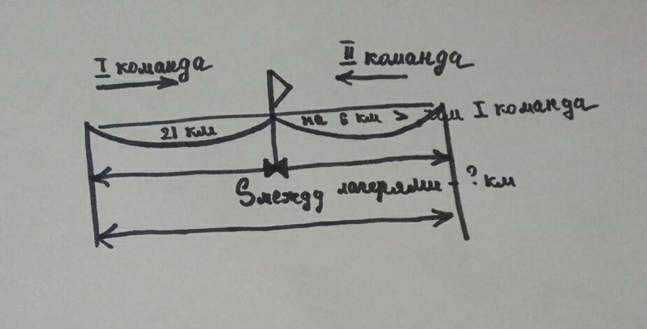 1) 21+6=27 (км)-проехала вторая команда до встречи