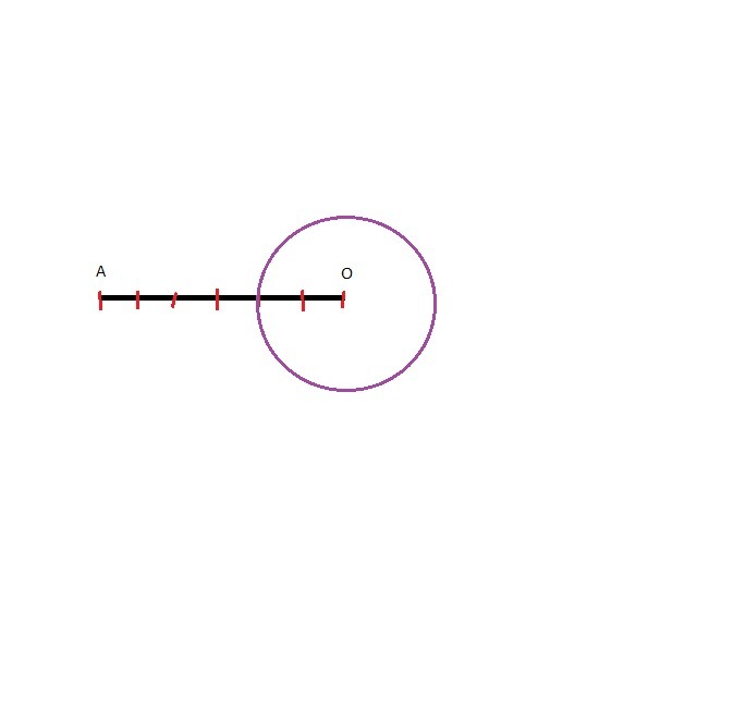 Начертите отрезок AO длиной 6 см. Из точки O постройте окружность радиусом, равным 1/3 длины отрезка AO