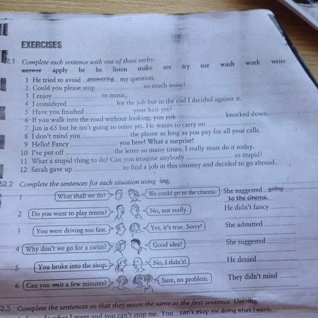 2.making. 3. Listening. 4.applying. 5.washing. 6.being. 7.working. 8.using. 9.seeing. 10.writing. 11.being. 12.trying