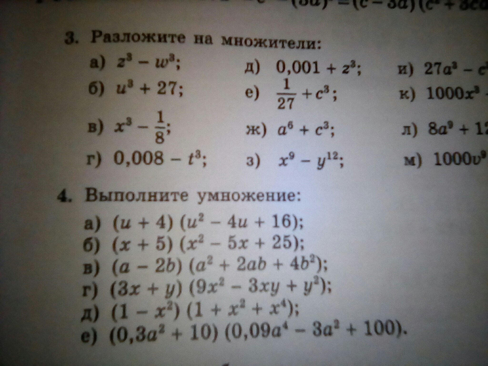 Произведение суммы двух чисел на неполный квадрат их разности по формуле СУ равно сумме кубов этих чисел:= u^3+4^3 = u^3+64.