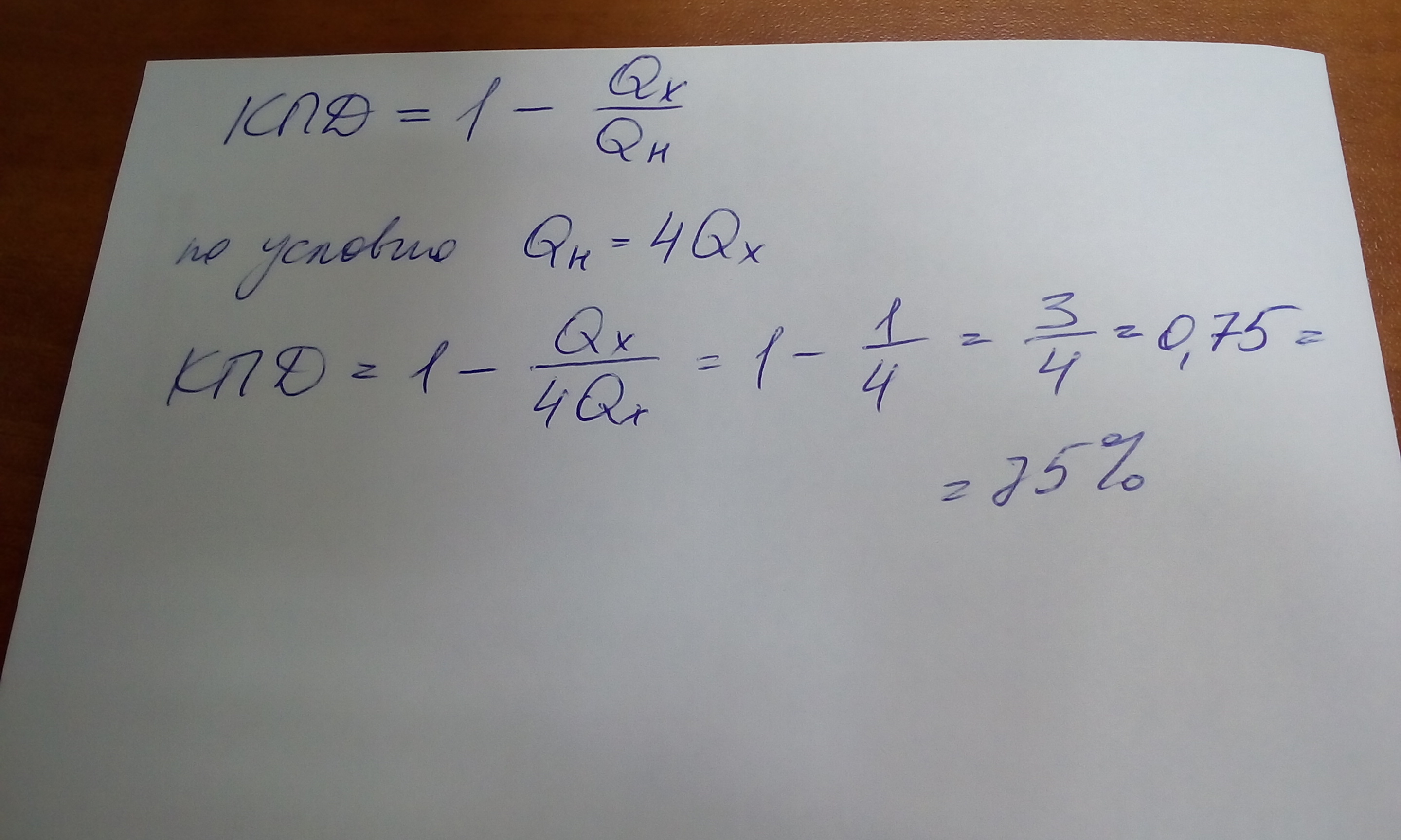 η=1-Q2/Q1=1-1/4=0.75 (75%)