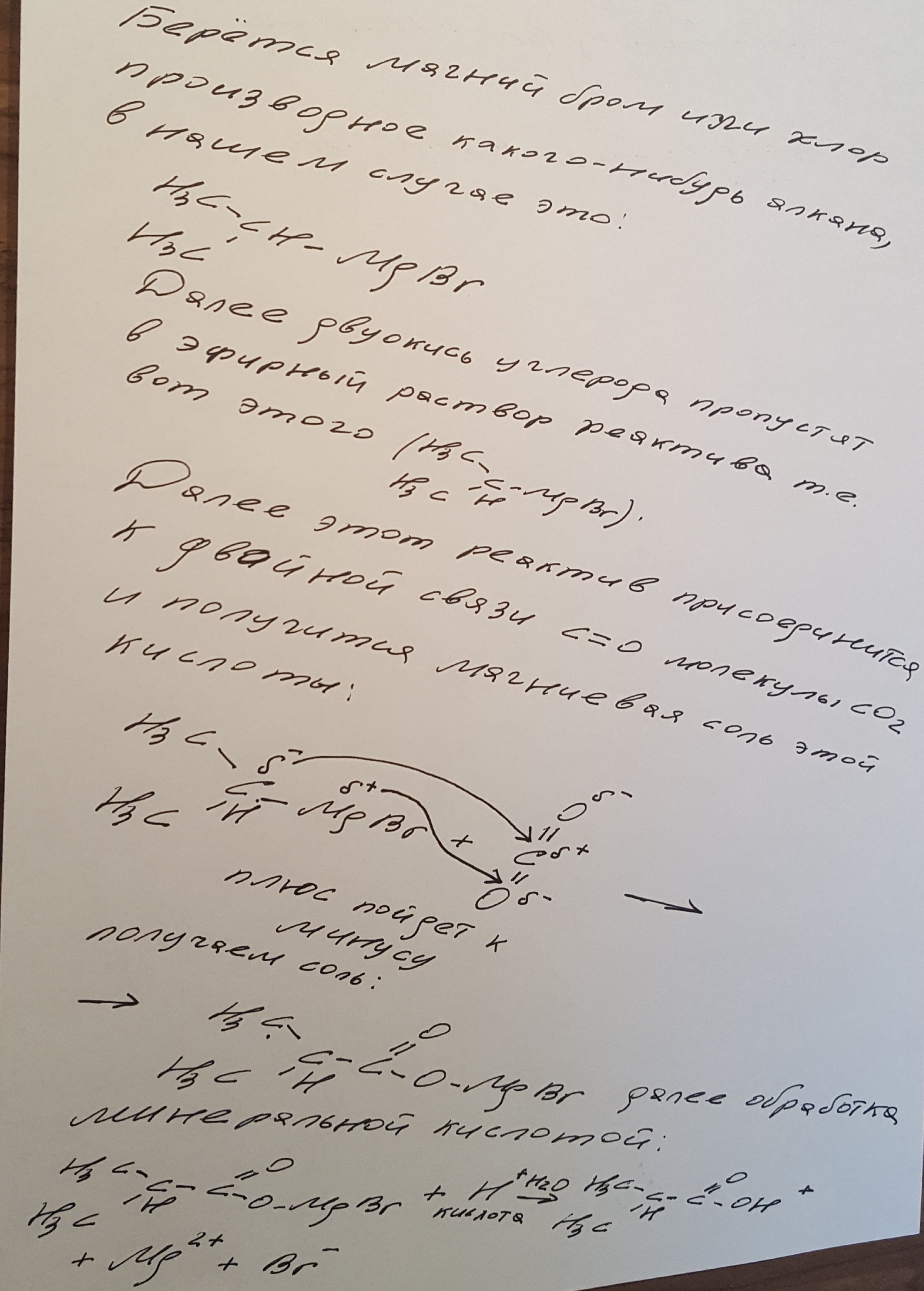 Напишите уравнения реакций получения 2-метилпропановой кислоты, используя реактив Гриньяра.