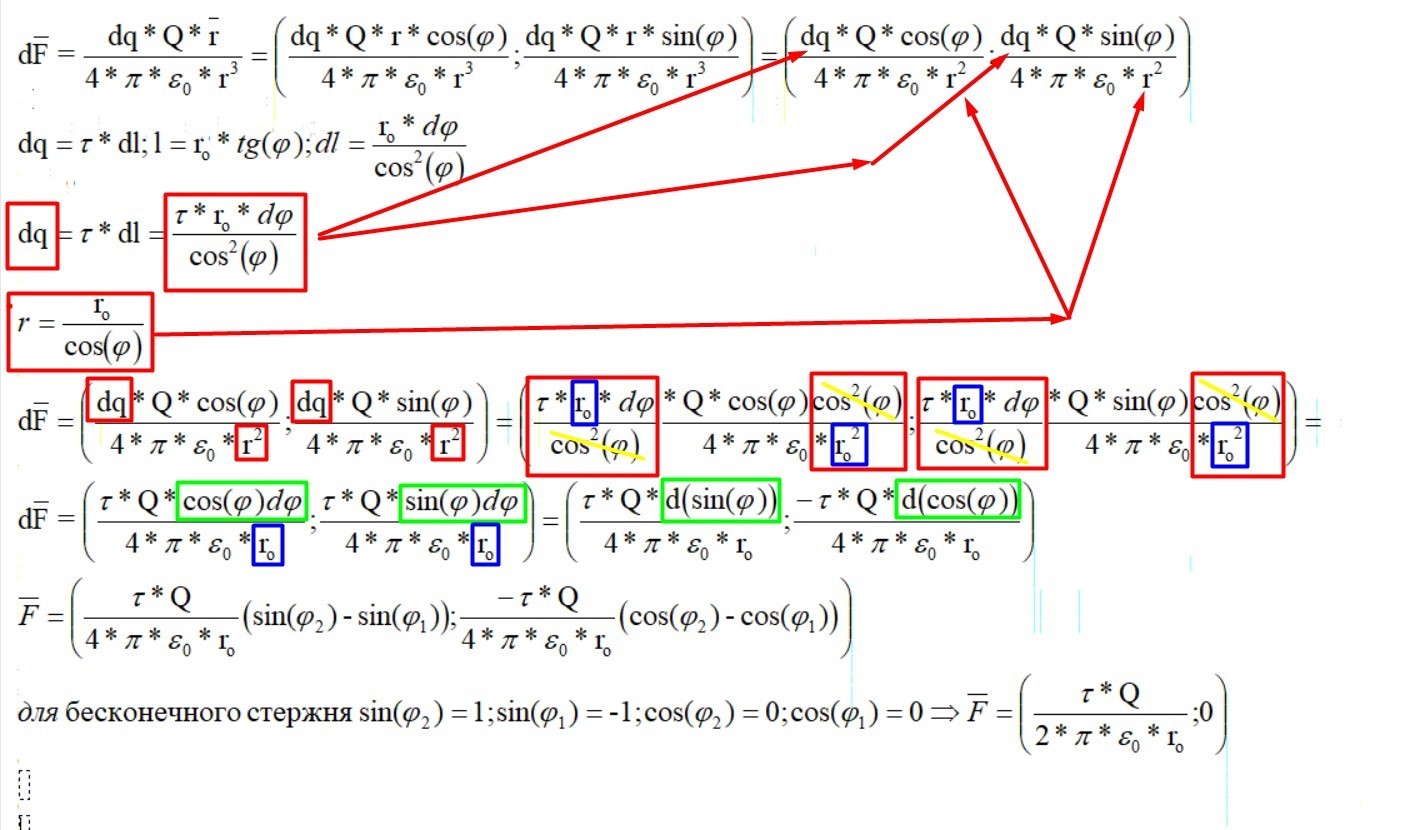 Прошу доработать его, ибо преподаватель не согласен с решением, но много объяснять свою позицию не соизволил. Знаю конечно элементарный способ решить такую задачу, но нужет такой вариант) . Хорошо бы объяснить еще, почему имеет смысл dl=r*dsin(fi) и все остальное после этого момента в решении))