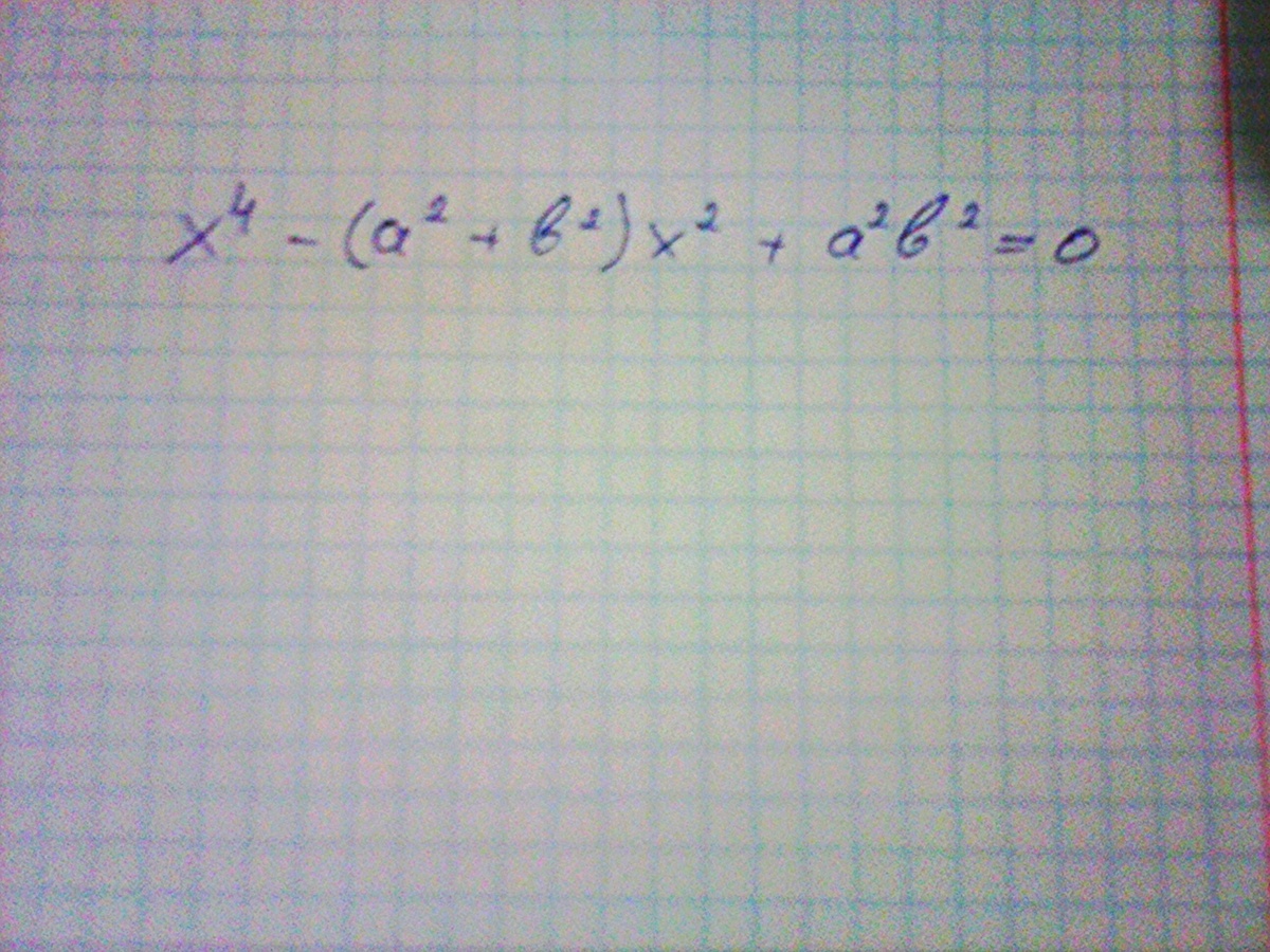 x^4-(a^2+b^2)x^2+a^2b^2=0\D=(a^2+b^2)^2-4a^2b^2=a^2-2a^2b^2+b^2=(a^2-b^2)^2\x_1^2=frac{a^2+b^2-(a^2-b^2)}{2}=b^2,to x=pm b\x_2^2=frac{a^2+b^2+(a^2-b^2)}{2}=a^2to x=pm a