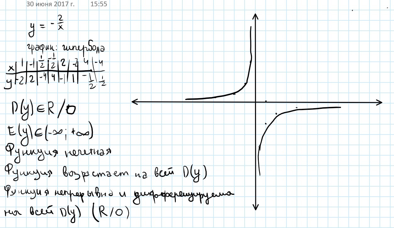 Построим функцию (растянем -1/x на два пункта) либо с помощью таблицы.