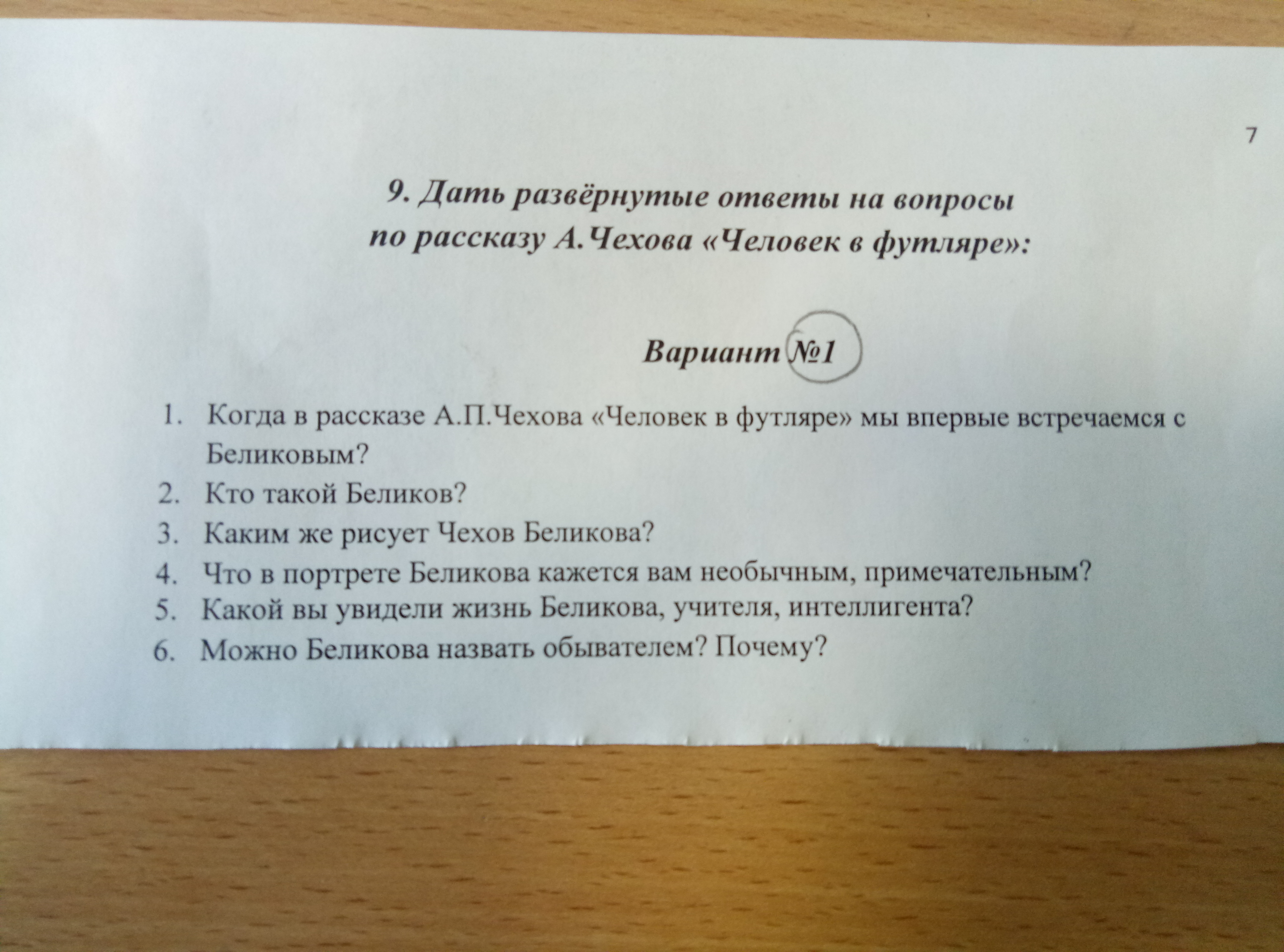 5. Беликов работает в гимназии 15 лет; ходит в гости для приличия, а не ради удовольствия; его боятся учителя и даже директор, его боится весь город; обстановка в квартире у Беликова похожа на футляр; Беликов очень одинок, сам всех боялся, боялся шума, собственного слугу. Хотел было устроить свою личную жизнь, но ничего из этого не вышло.