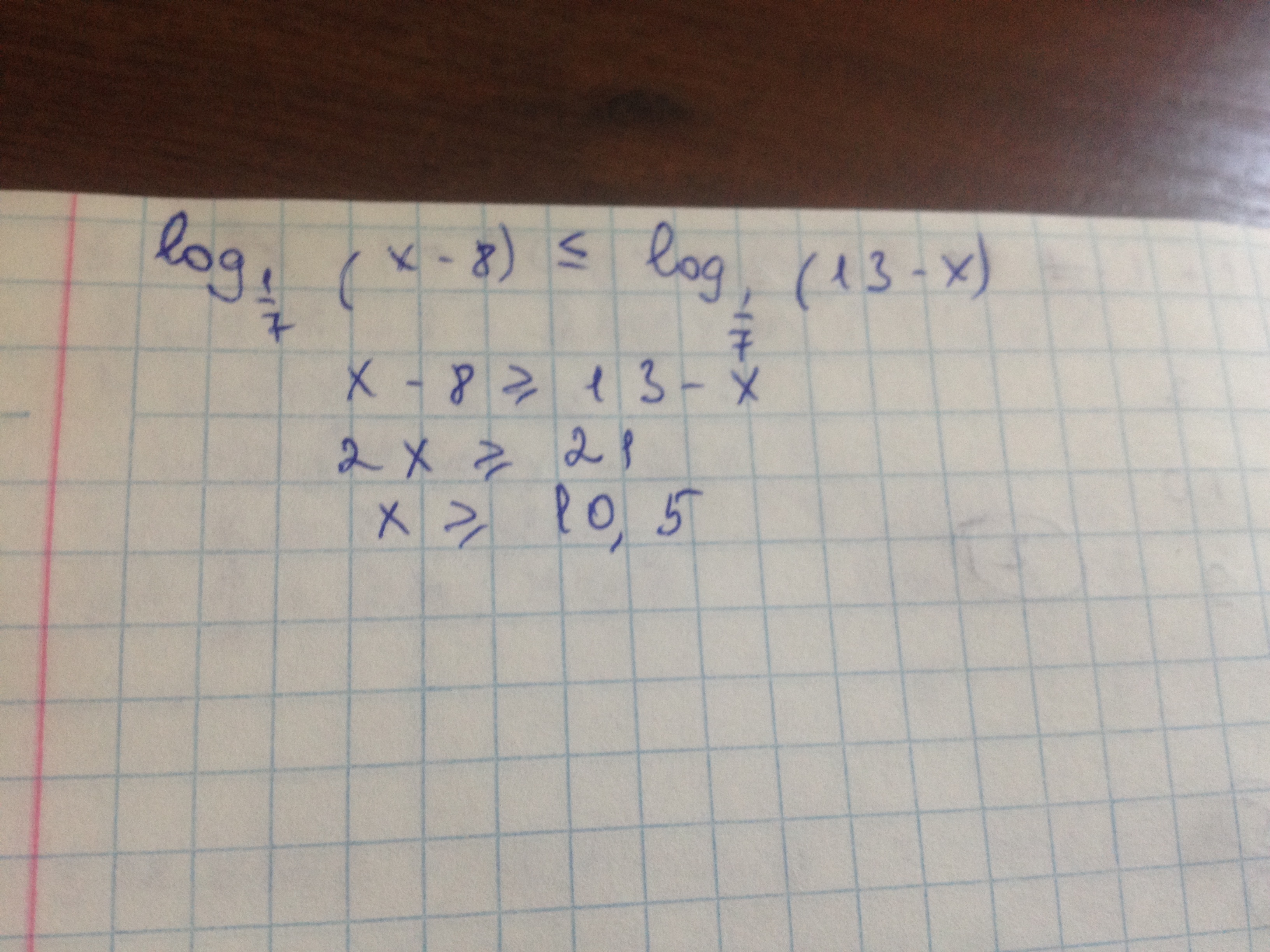 {x-8≥13-x⇒x+x≥13+8⇒2x≥21⇒x≥10,5