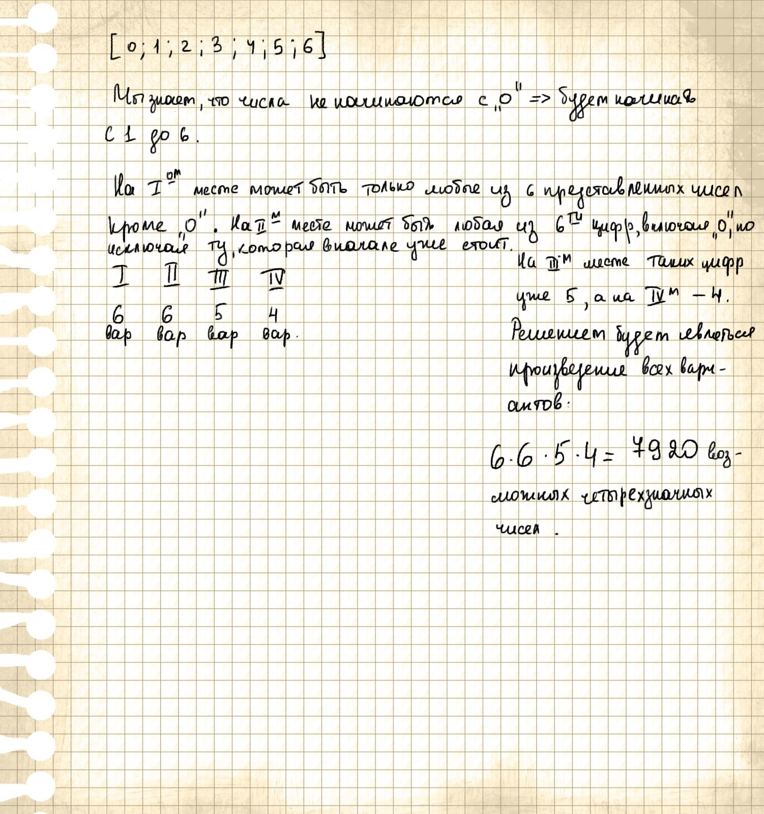 Сколько четырехзначных чисел можно составить из цифр 0,1,2,3,4,5 и 6 если цифры в числе не повторяются?