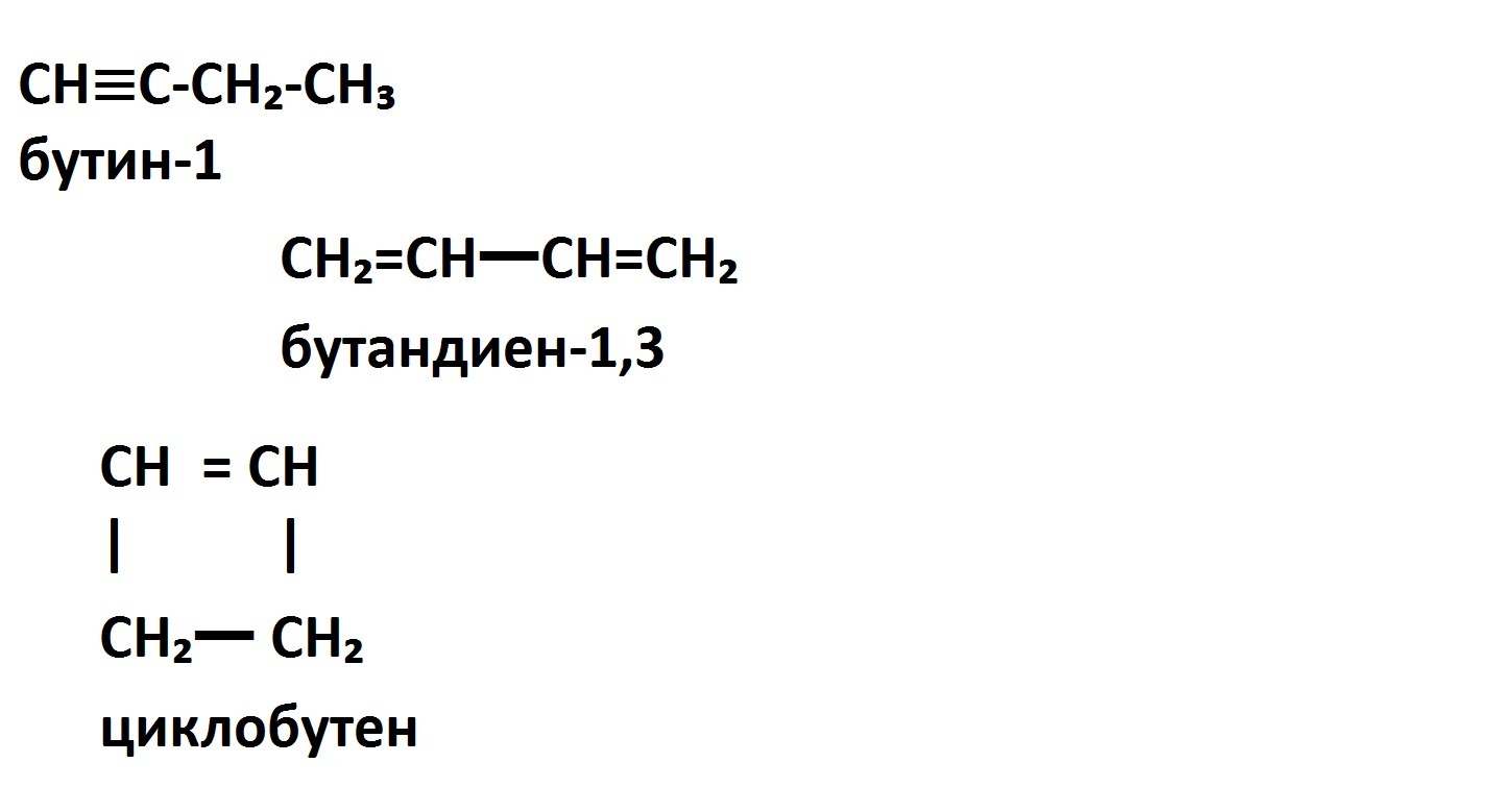 Какие углеводороды являются межклассовыми изомерами алкинов? Приведите структурные формулы бутина -1 и его межклассового изомера.