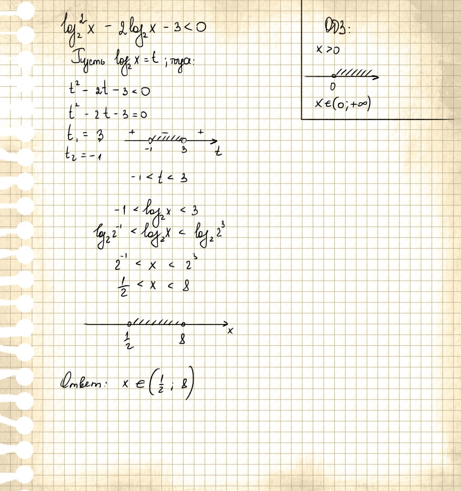 loq2(2*x)-2*loq2(x)-3<0 ОДЗ x>0
