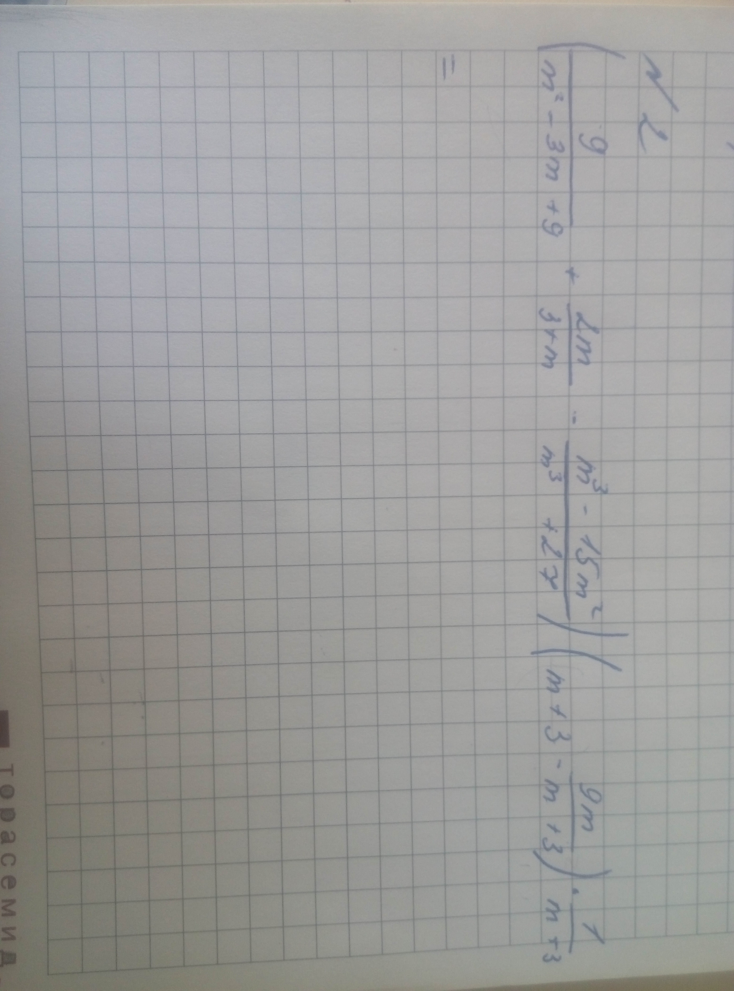 2)m+3-9m/(m+3)=(m²+6m+9-9m)/(m+3)=(m²-3m+9)/(m+3)