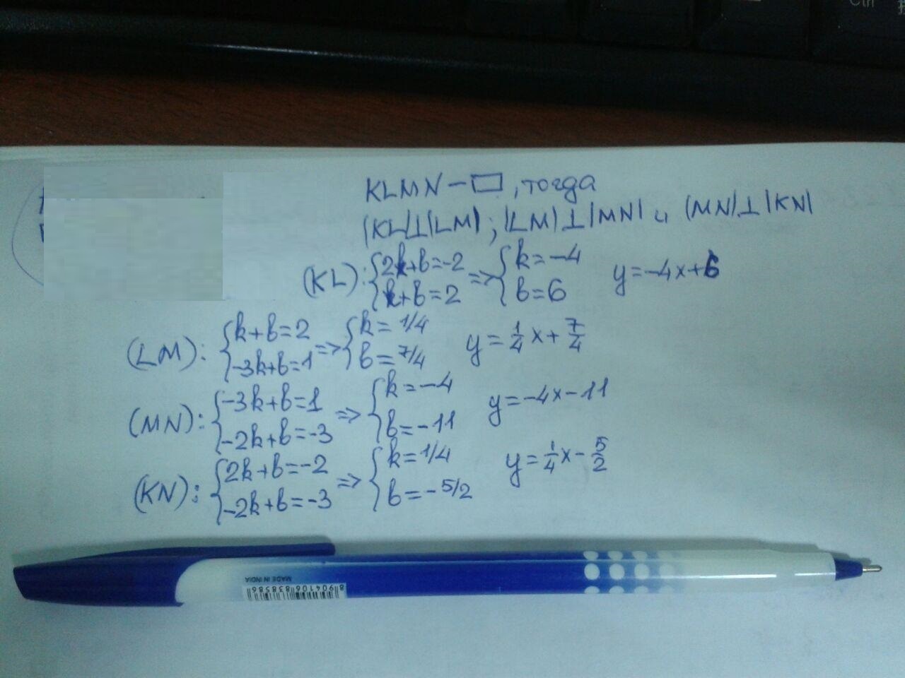b) KL⊥LM (⊥KN); LM⊥MN (⊥KL) (произведение коэффициентов при Х даёт (-1).