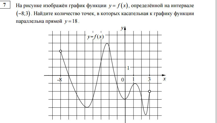 7. Ищем точки, в которых угловой коэффициент равен 0, то есть точки экстремума функции. Их тут 5, значит ответ 5