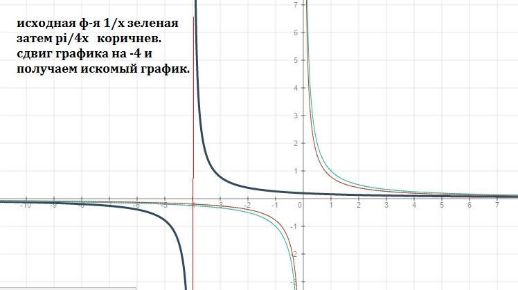 то есть гипербола а/х где затем сдвиг по оси х на -4 а=π/4
