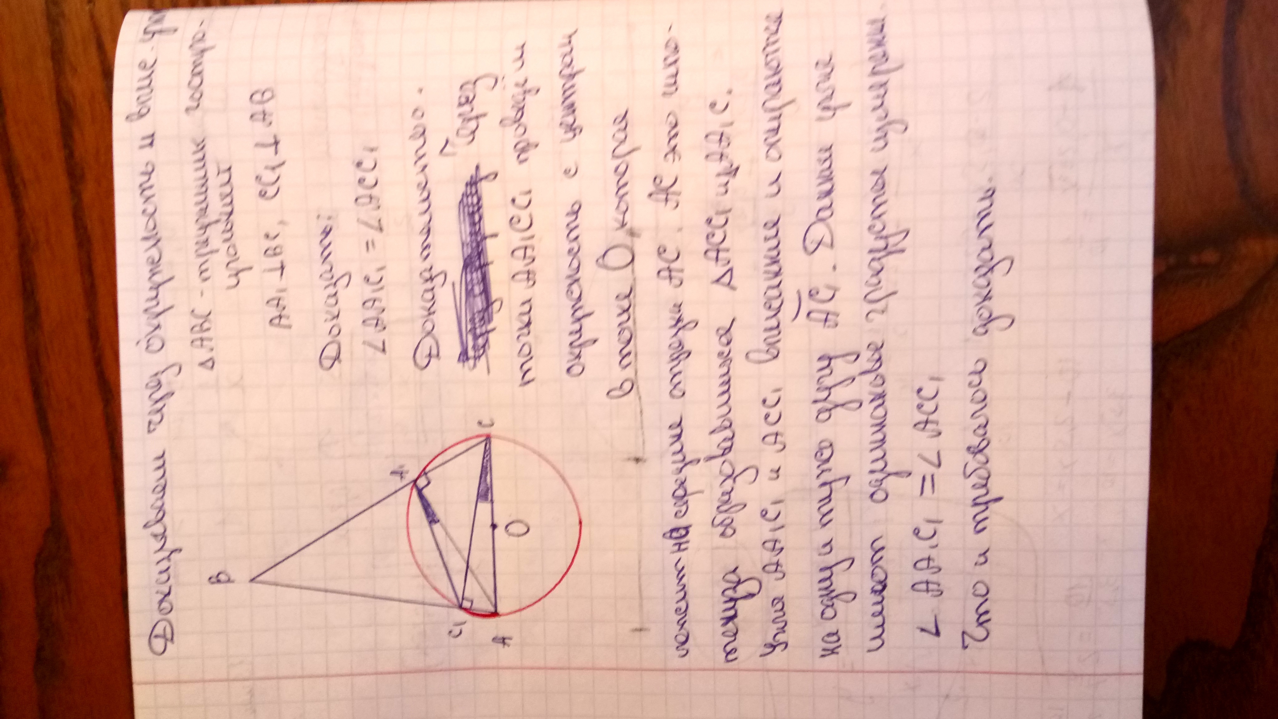 ЗАДАНИЕ: В остроугольном треугольнике ABC проведены высоты AA1 и CC1. Докажите, что углы AA1C1 и ACC1 равны.