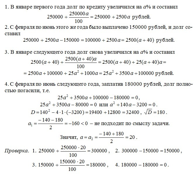 Найдите число а, если известно, что кредит был полностью погашен за два года, причем в первый год было переведено 150000 руб., а во второй 180000 рублей