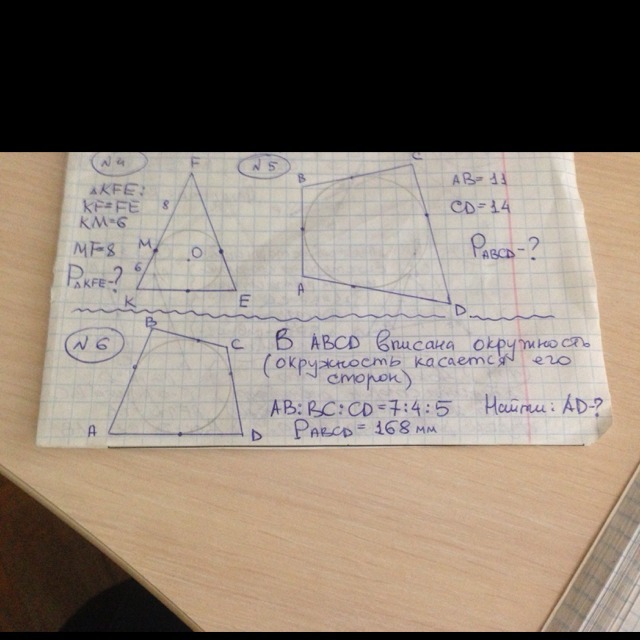 В выпуклый четырёхугольник можно вписать окружность тогда и только тогда, когда суммы длин его противоположных сторон равны.