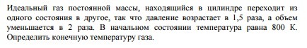 Идеальный газ постоянной массы, находящийся в цилиндре переходит из