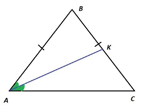 ΔABC - равнобедренный, AB=BC; AK - биссектриса угла ВАС ⇒