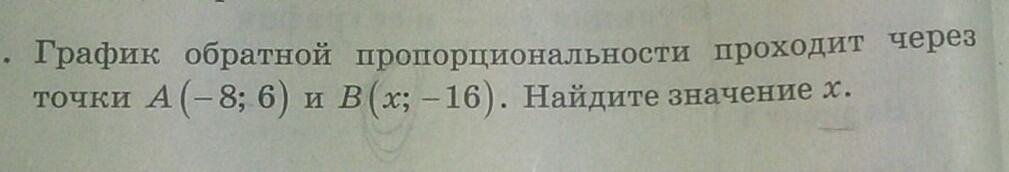 Т.к. график проходит через точки А(-8;6) и В(X; -16), то