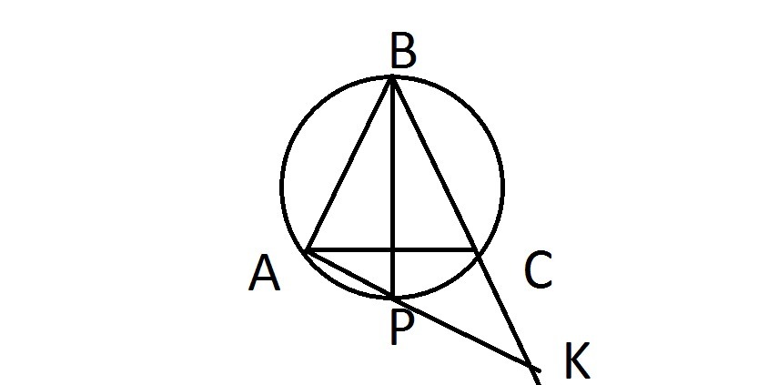 Вокруг равностороннего треугольника АВС описана окружность. Продолжение высоты ВН пересекает эту окружность в точке Р. Найдите угол между прямыми ВС и АР (в градусах).
