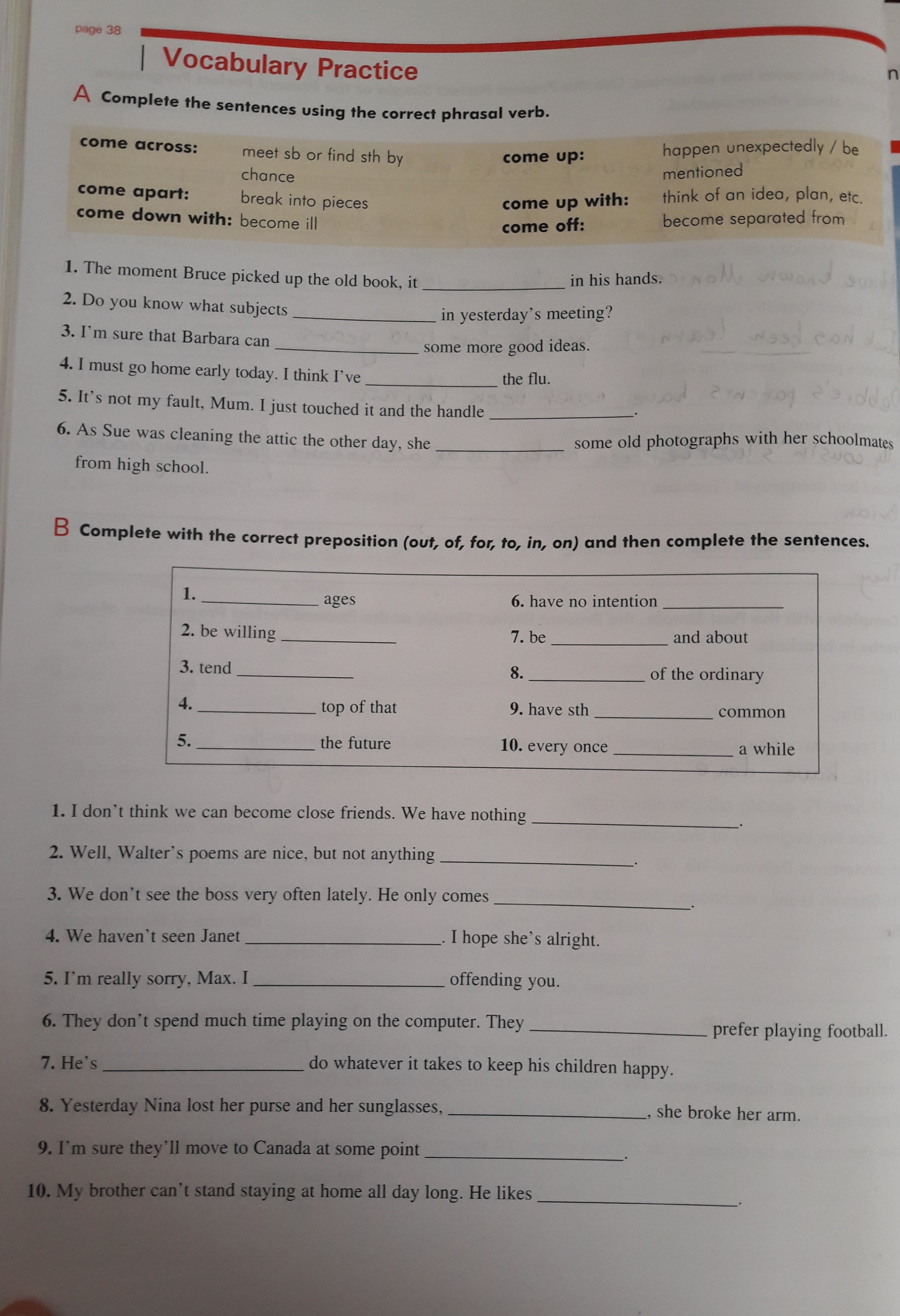 10. My brother can't stand staying at home all day long. He likes to be out and about.