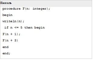 Найдите сумму второго и предпоследнего числа, которые будут выведены при вызове F(3).