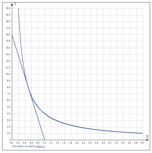 Угловой коэффициент k=y'(0.5) = -4/0.25 = -16.