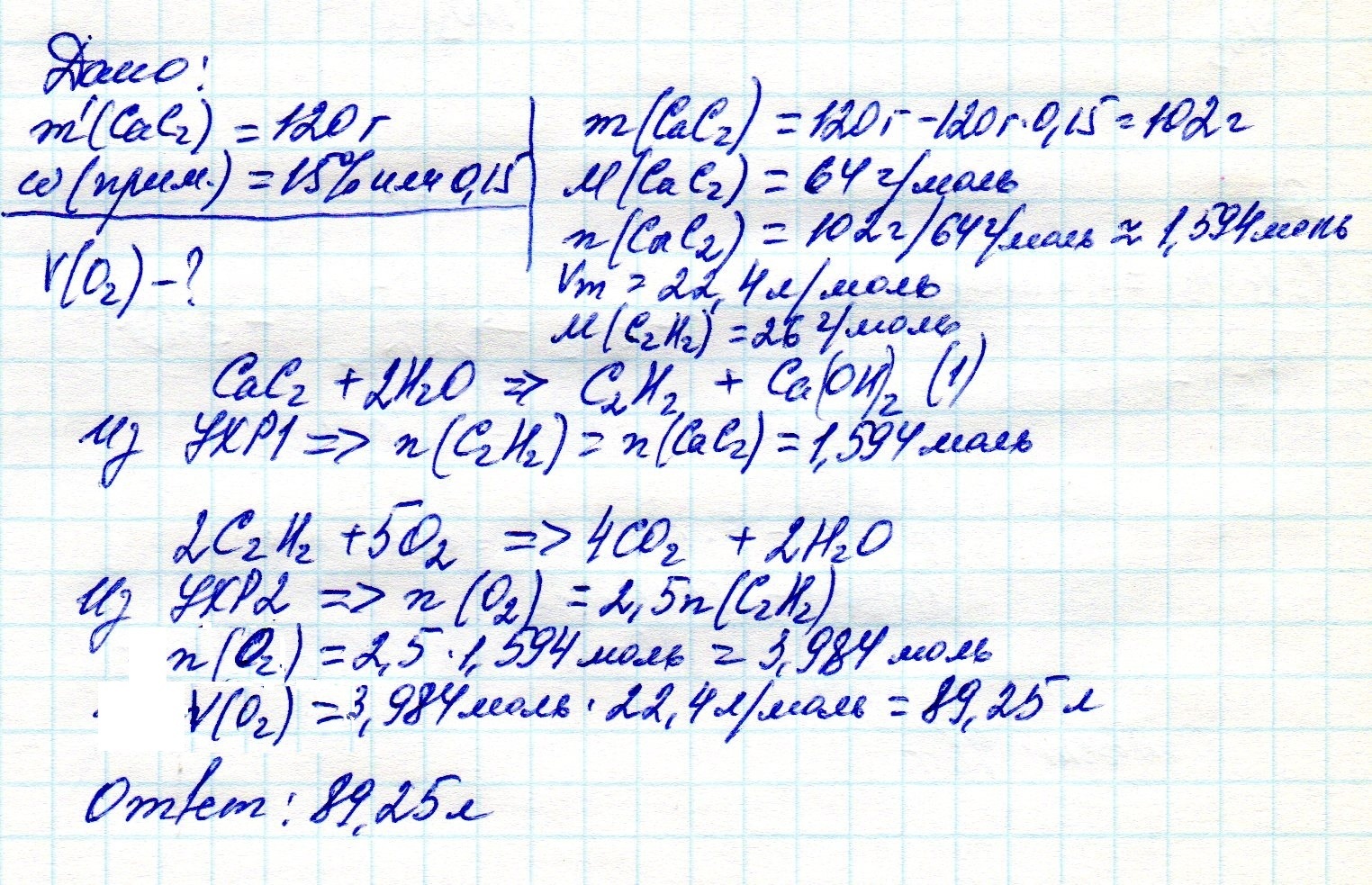 какой объем (н.у.) кислорода потребуется для полного сгорания ацетилена полученого из 120 г карбида кальция содержащего 15% примесей?