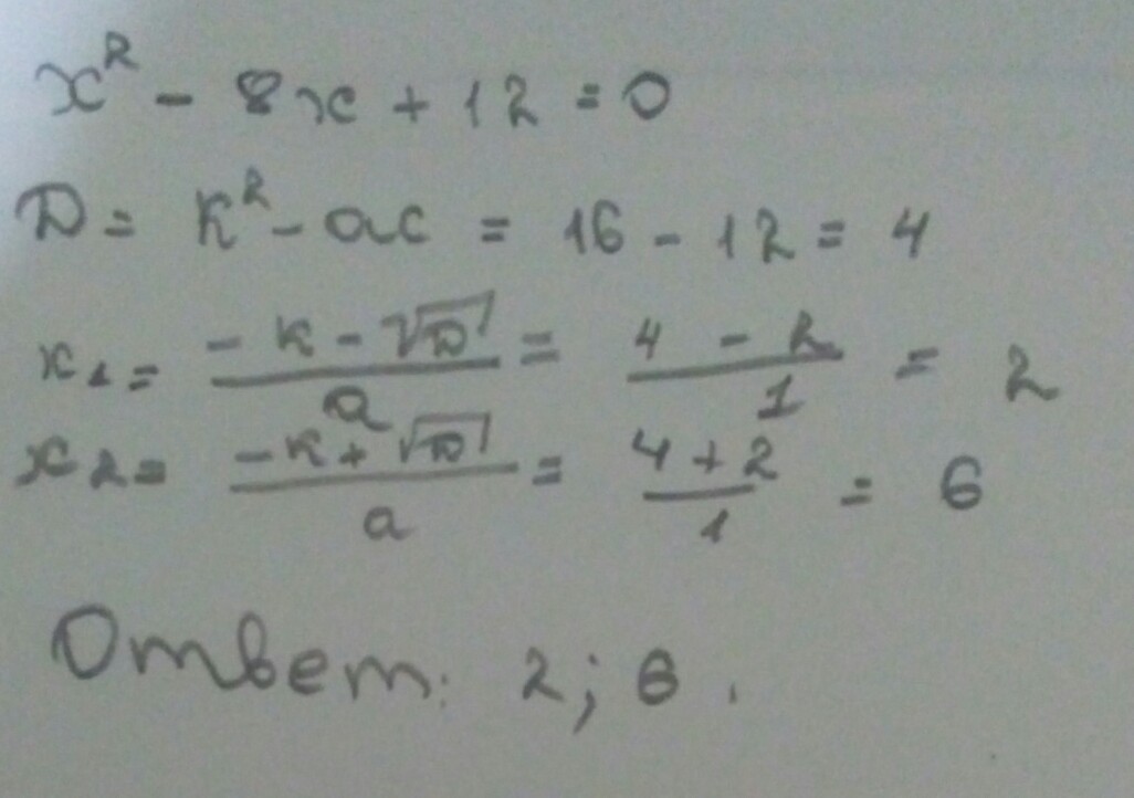 x^2-8x+12=0 x1+x2=8 x1×x2=12 => x1=6 x2=2