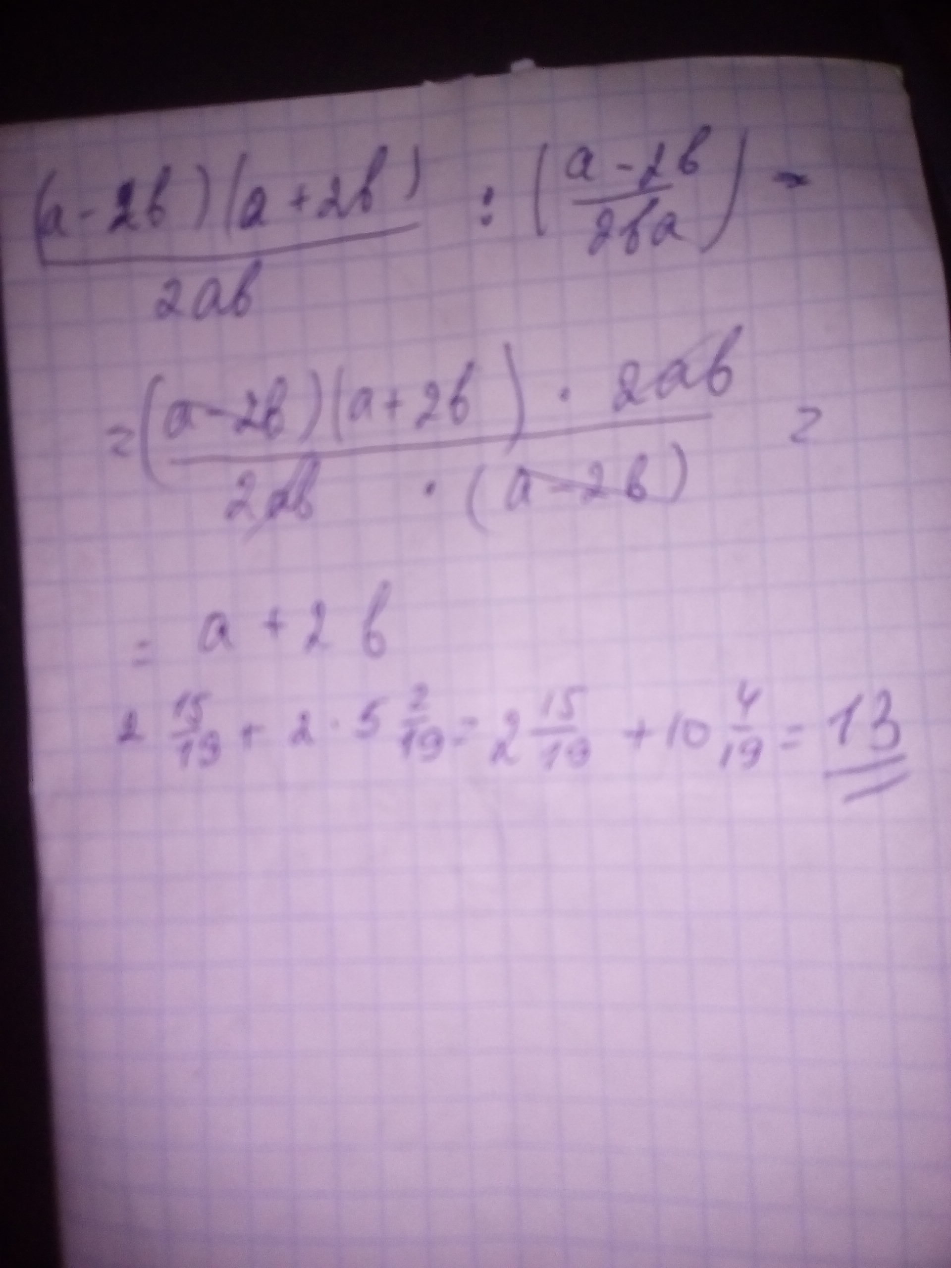 2)(a-2b)(a+2b)/2ab:(a-2b)/2ab=(a-2b)(a+2b)/2ab*2ab/(a-2b)=a+2b