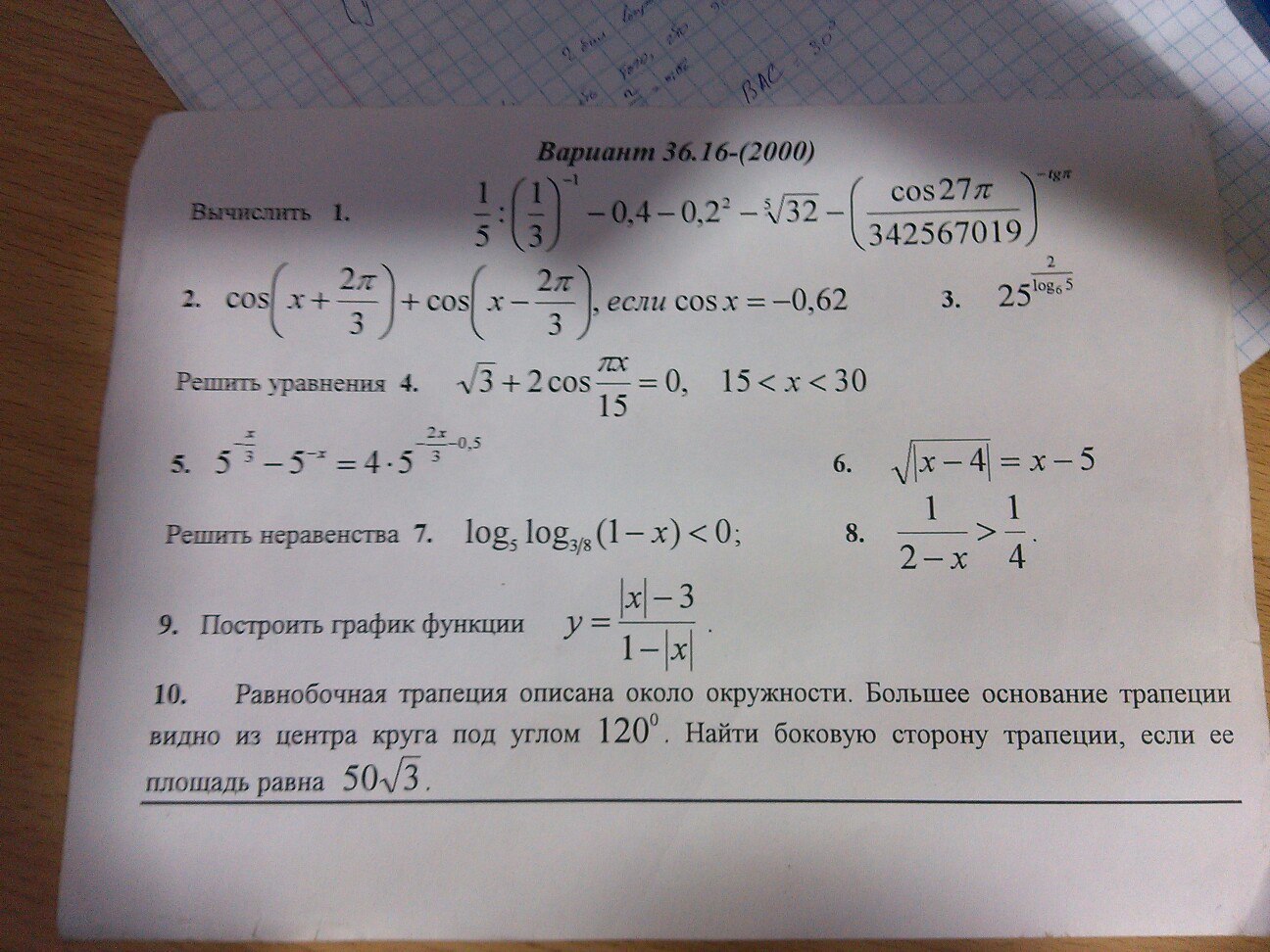 Пацаны после теха поступаю в институт там будут вступительные на подобие этого, я смог решить 3 задание: ответ 1296, 6 задание: х=5 , 8 задание: х=-2