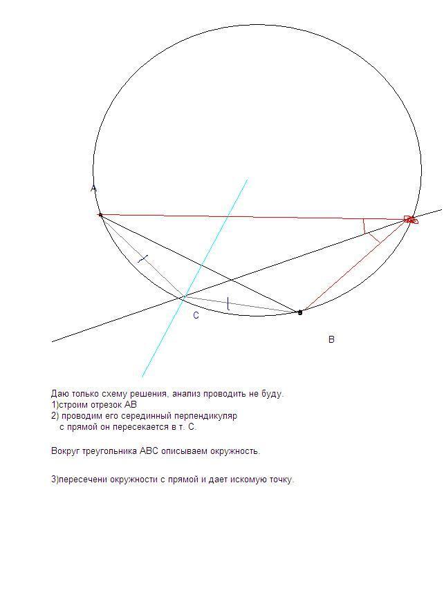 Дана прямая l и точки A и B по разные стороны от нее. Постройте на прямой l такую точку C, чтобы прямая l делила угол ACB пополам.