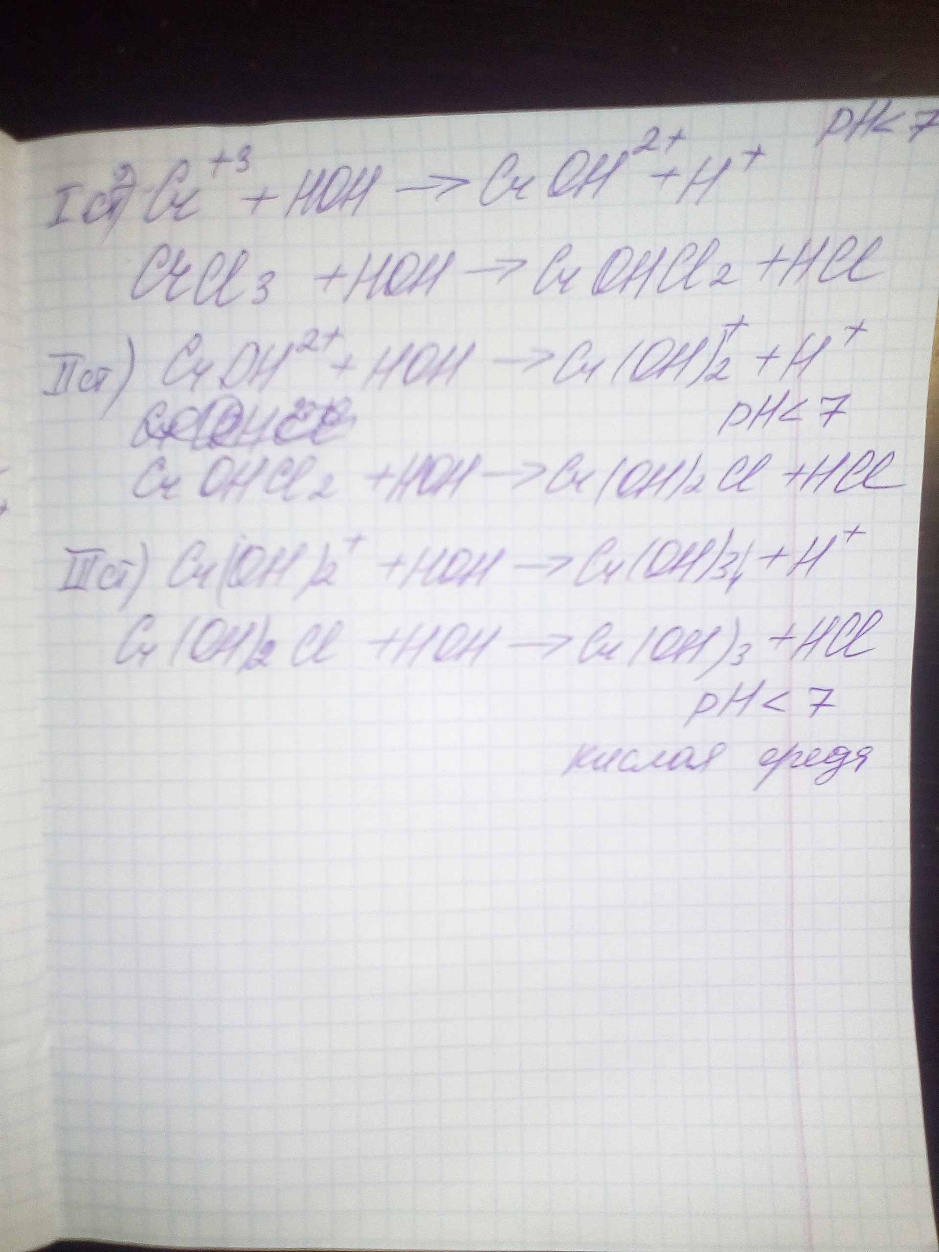 Помогите. Изменится ли реакция среды если растворить в воде соль crcl3. Напишите уравнение гидролиза