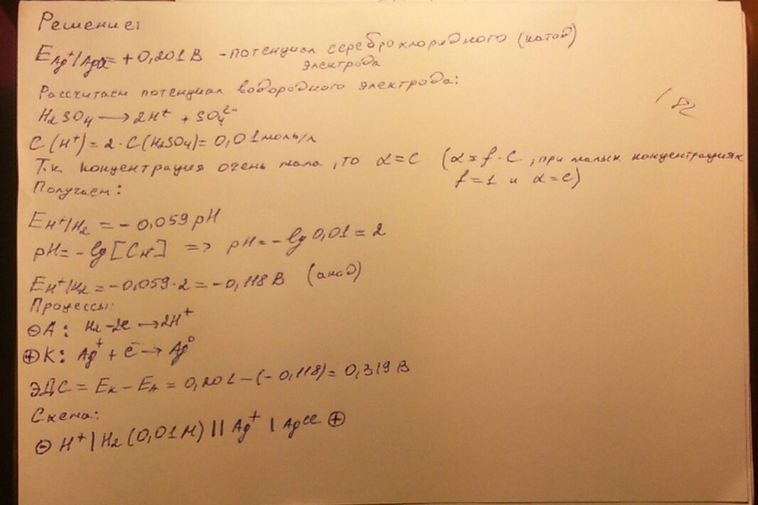 раствор серной кислоты. Активность ионов водорода считать равной концентрации.