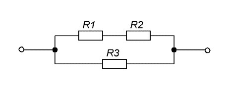 Сопротивления резисторов на схеме равны: R1 = 1 Ом, R2 = 2 Ом, R3 = 3 Ом. Напряжение на зажимах 6 В.