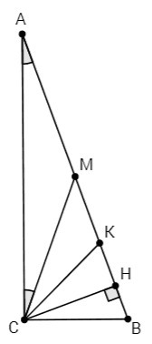 В прямоугольном треугольнике ABC проведены медиана CM, высота CH и биссектриса CK. Известно, что угол A равен 20 градусов, угол C равен 90 градусов.