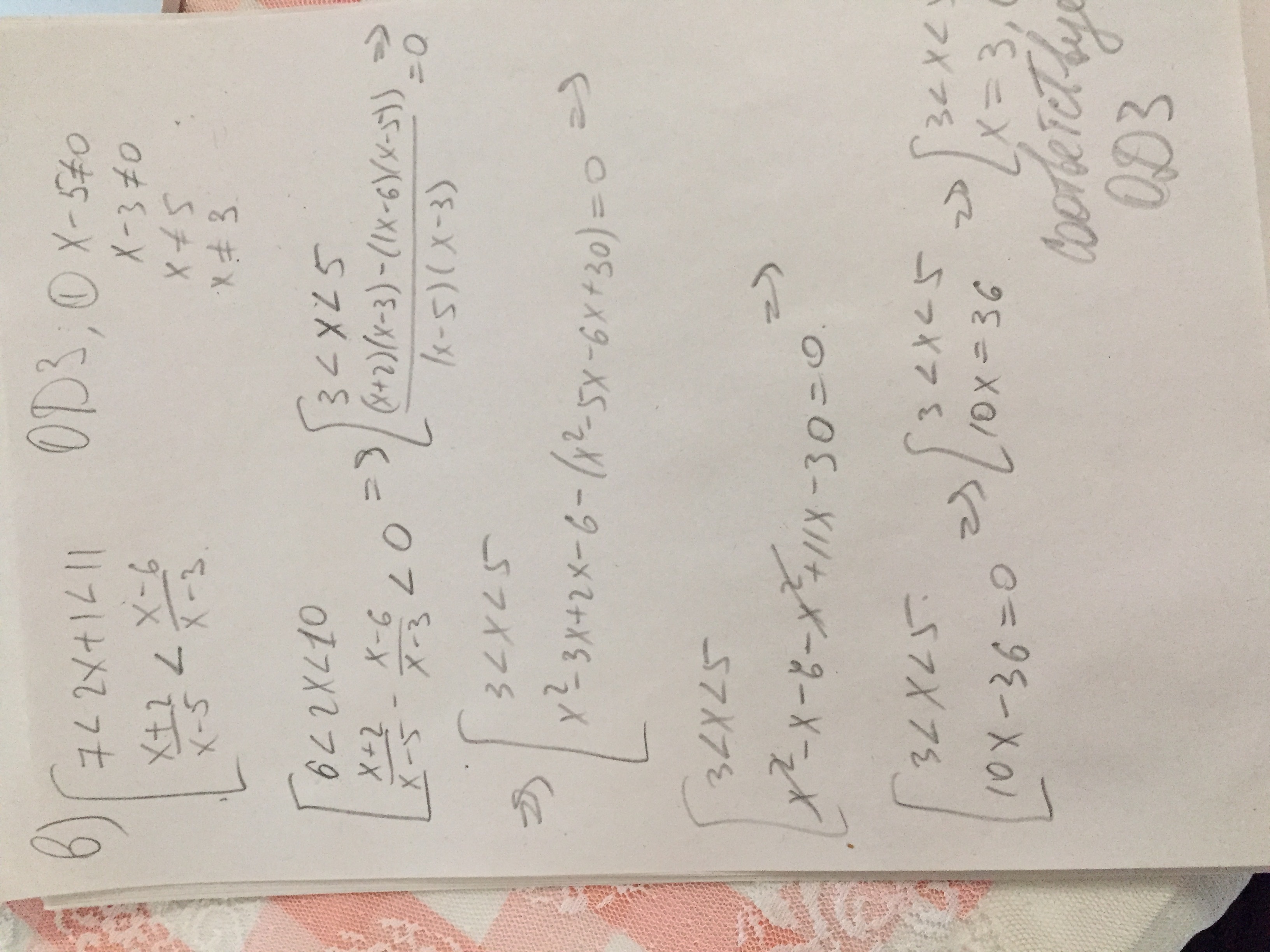 плохо сфотографировал......последняя система 3<x<5 и x=3,6