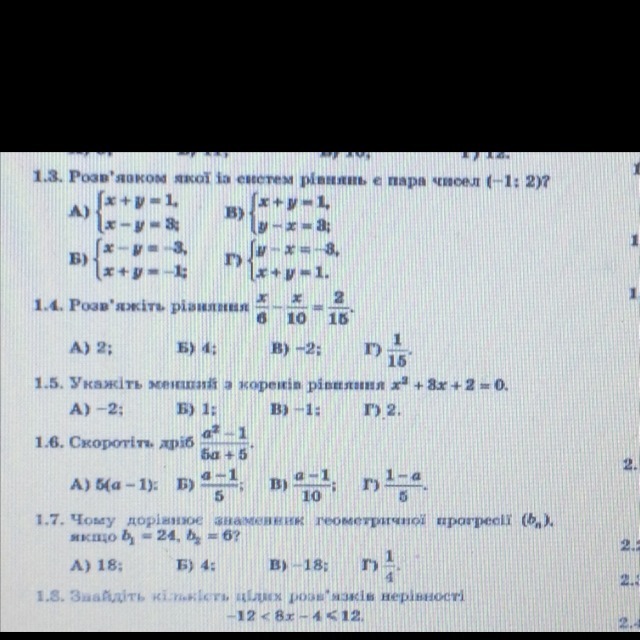 1.6. (а^2 -1)/(5a +5) = (a+1)*(a-1)/5*(a+1) = (a-1)/5