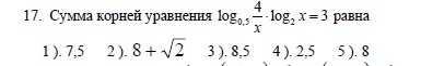 У меня получились корни 0,5 и 8. Соответственно ответ 3) 8,5
