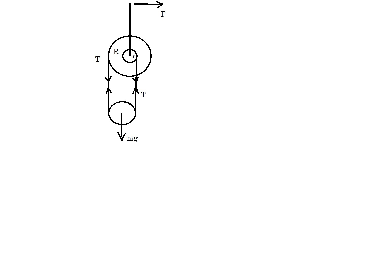 F=m*g*(R-r)/(2*L)=10*10*(0.2-0.1)/(2*1)=5 H