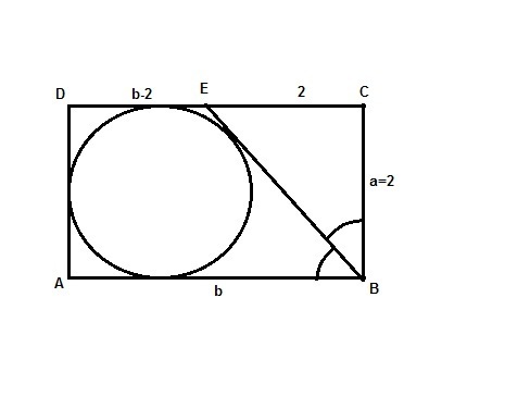 CB = CE = 2*R = 2 см; DE = b - 2 см.