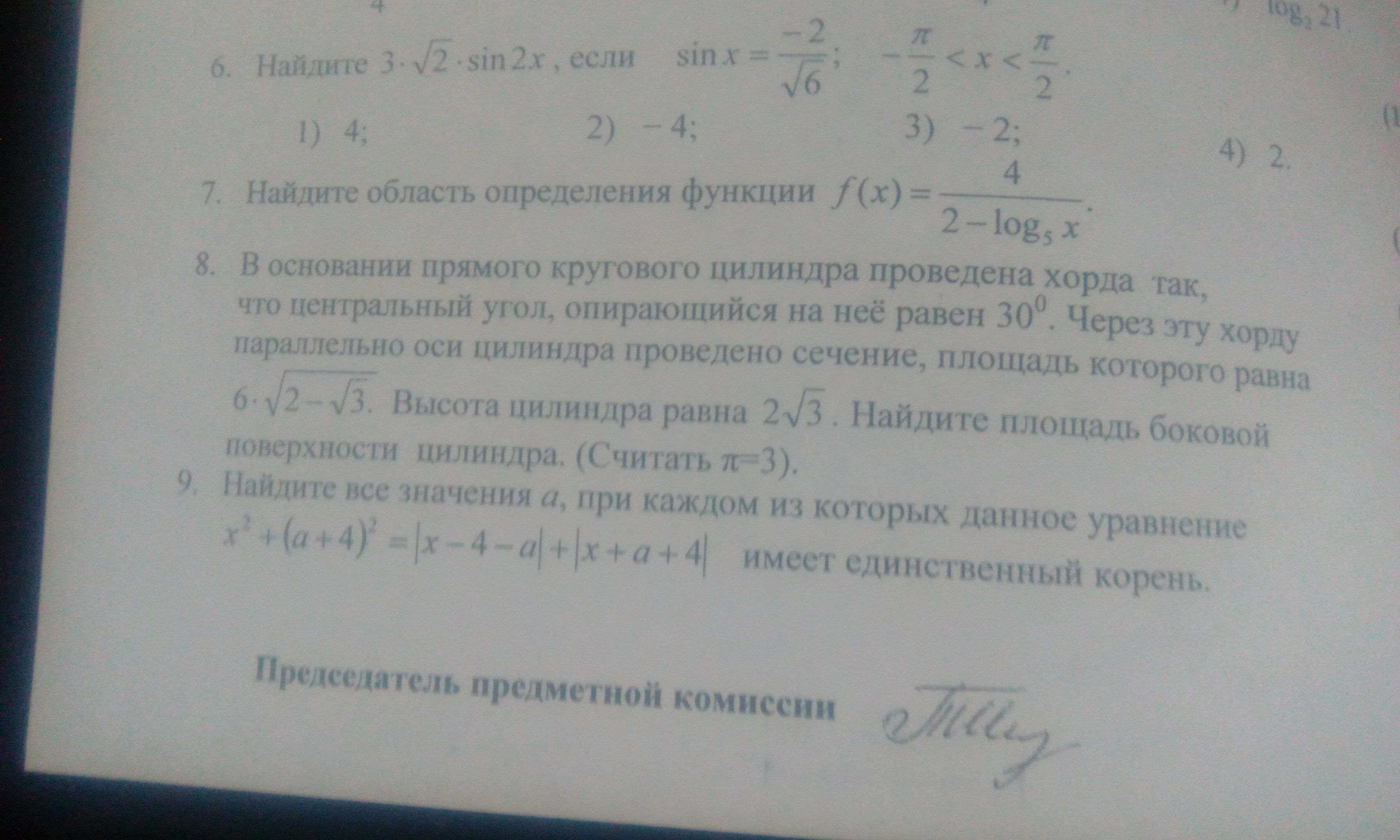 Sсеч = X * h = R √(2 - √3) h, отсюда можем найти радиус основания цилиндра: R = Sсеч / (h √(2 - √3)) = 6 √(2-√3) / (2√3 * √(2 - √3)) = √3