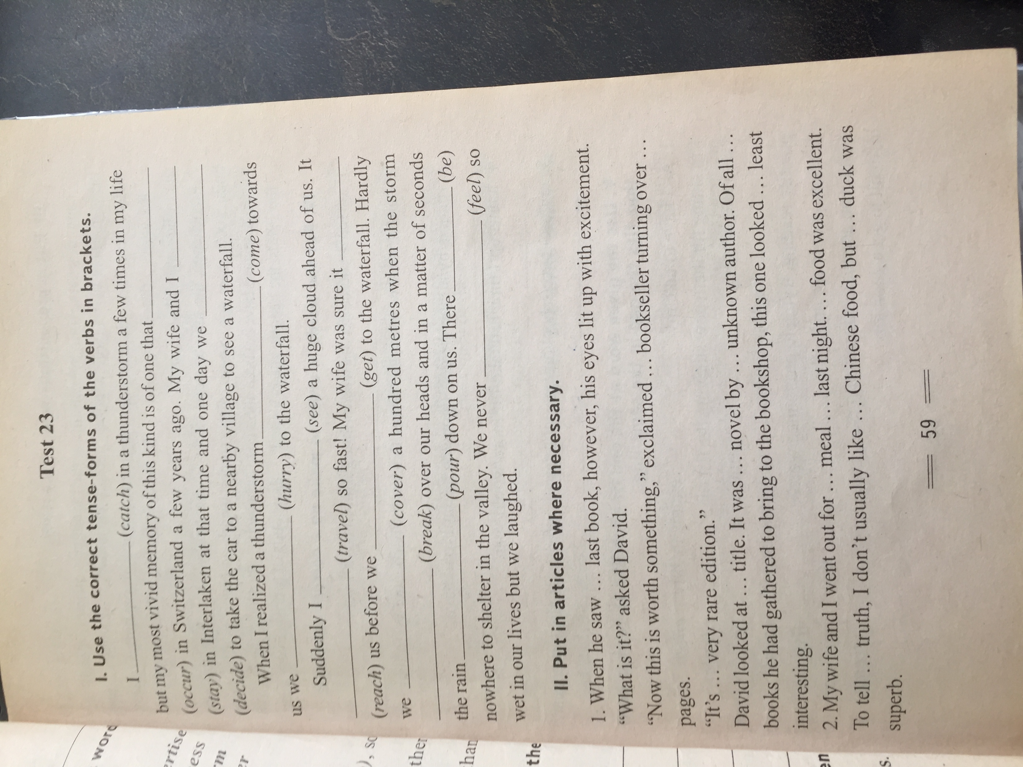 saw; was traveling; would reach; got; hardly had we covered; broke; was pouring; was; had never felt