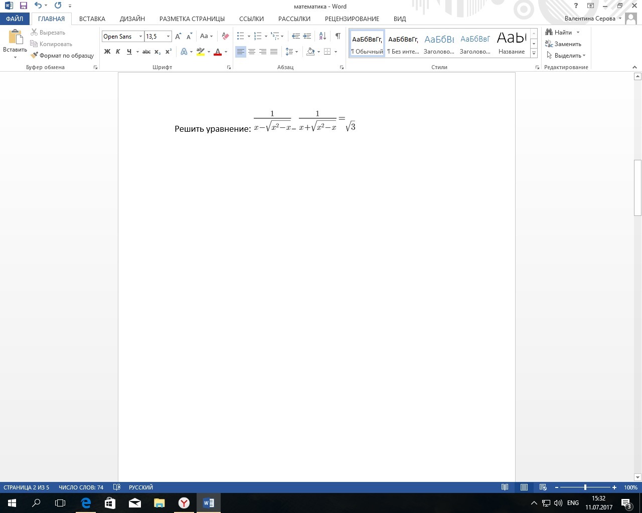 Проверяем. Первый корень не подходит, т.к. в начальном выражении будет деление на ноль.