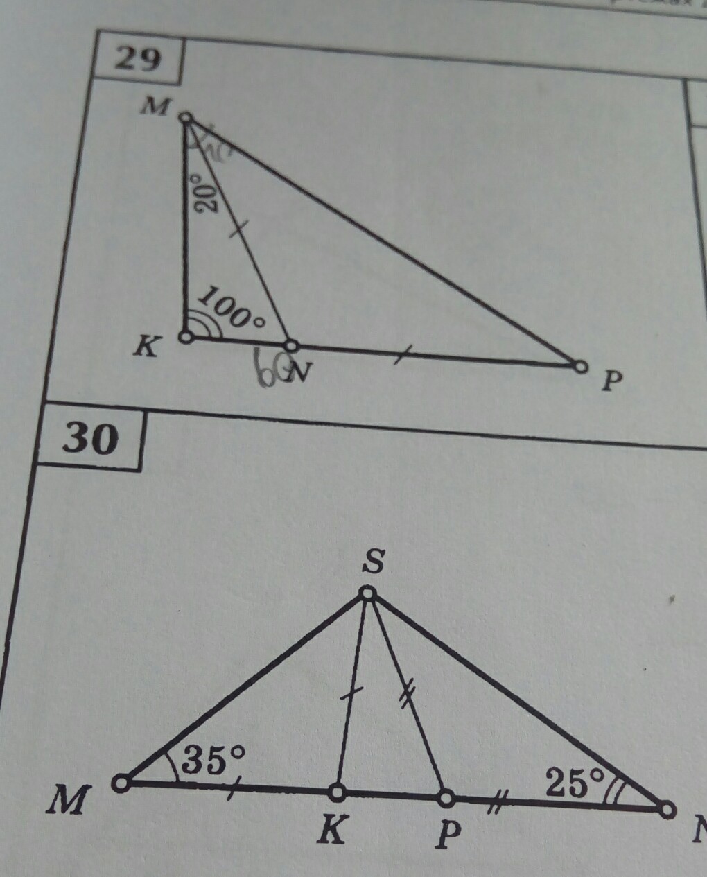 3) Внешний угол треугольника равен сумме двух не смежных с ним внутренних углов треугольника. (Это свойство попробуйте использовать как вариант решения)