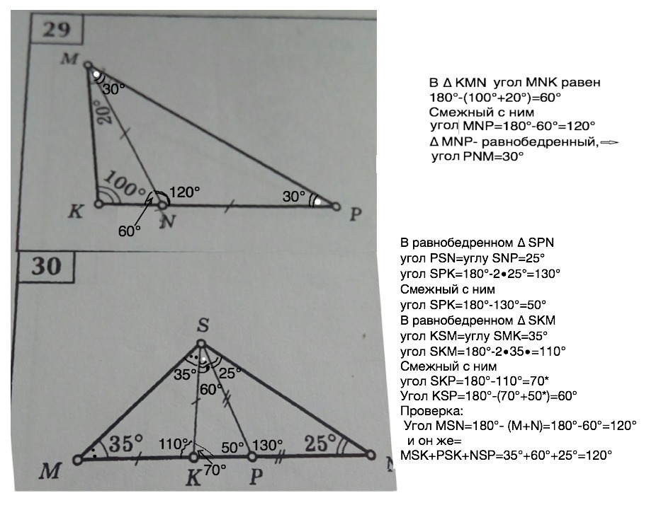 Решение дано в приложении. Для нахождения углов данных треугольников применено свойство: