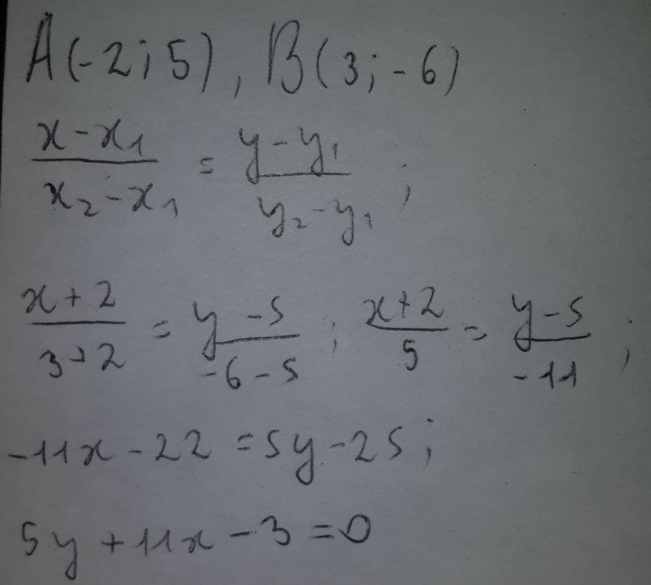 уравнение геометрического места точек на плоскости oxy равноудаленных от точек А(-2,5) и B(3,-6) имеет вид
