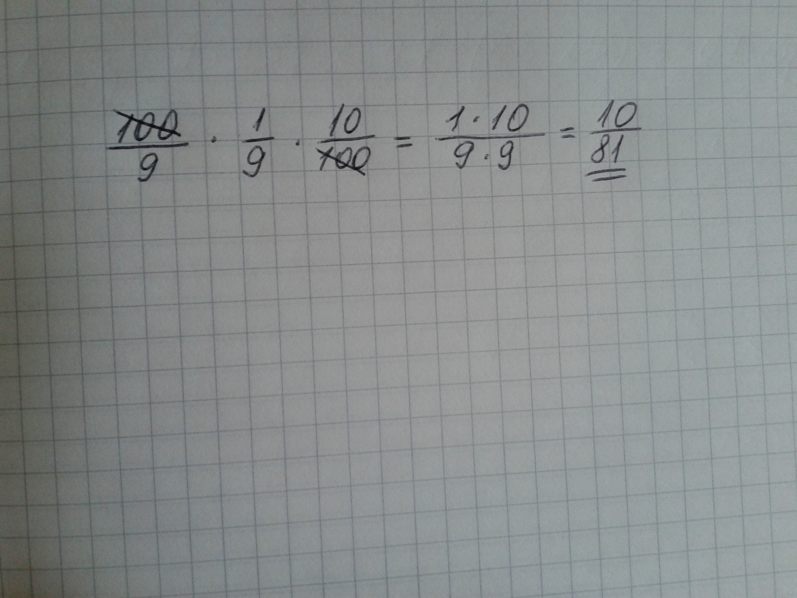 100/9 × 1/9 × 10/100 = 100/9 × 1/9 × 1/10 = 100/81 × 1/10 = 10/81